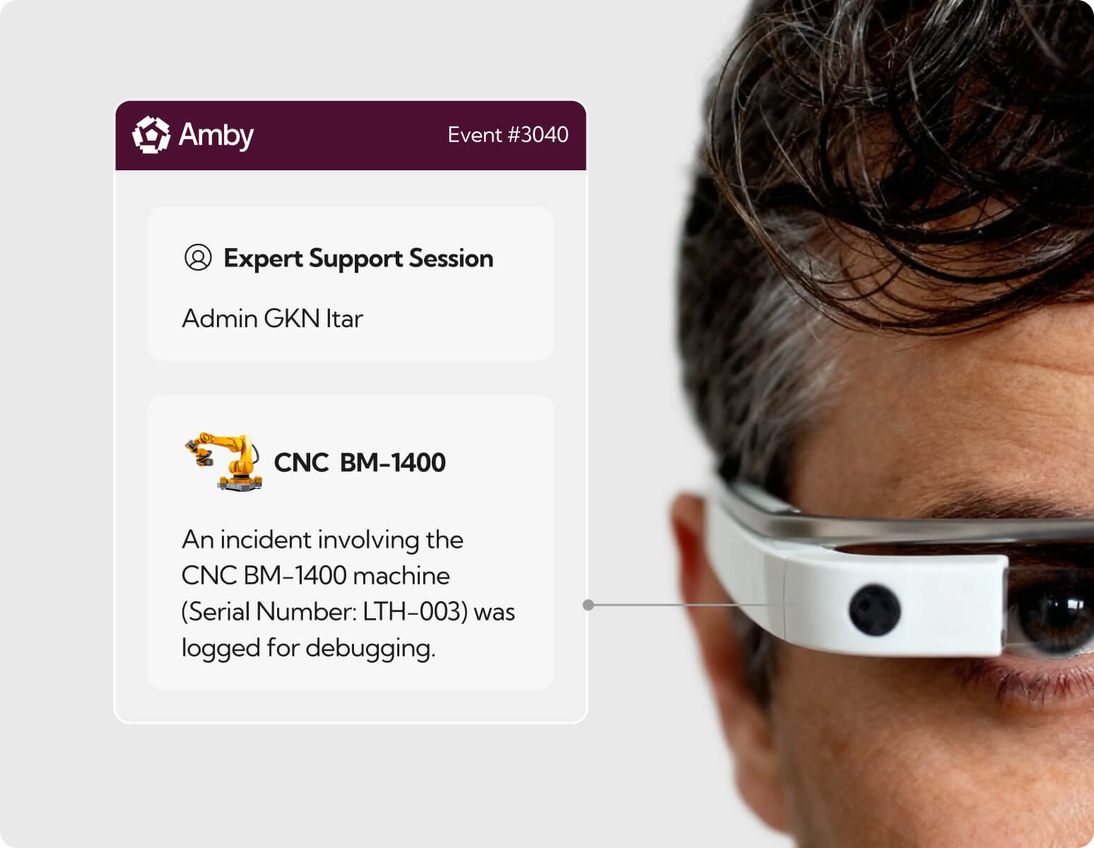 All problems can’t be solved with technology alone. With Amby’s Smart Glass (compliant with all factory & ITAR environments), you can plug in and connect with an expert … anywhere in the world. They see what you see, and have access to the entire details of your issue and AI support.